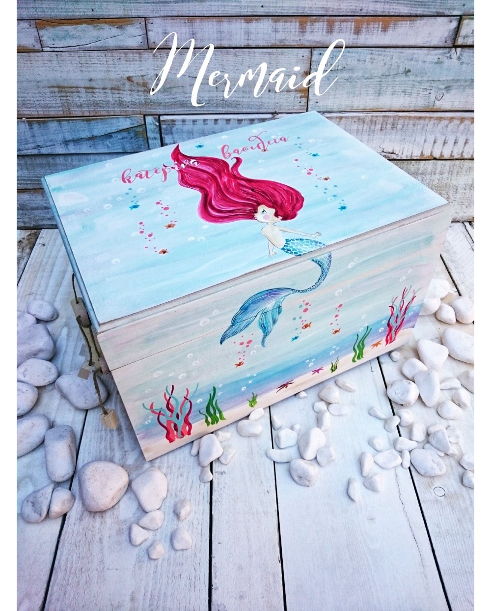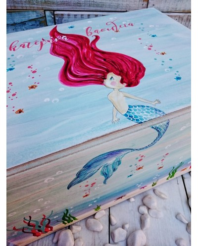Ξύλινο Κουτί Βάπτισης Γοργόνα Βυθός Κατερίνα Βασιλεία