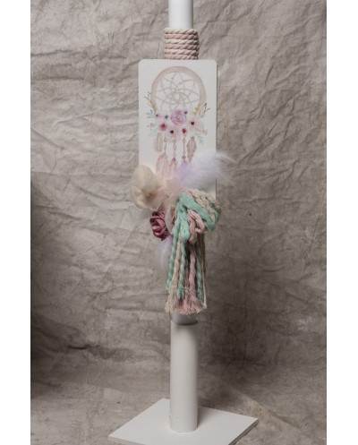 Λαμπάδα με ξύλινο καδράκι ζωγραφισμένο στο χέρι