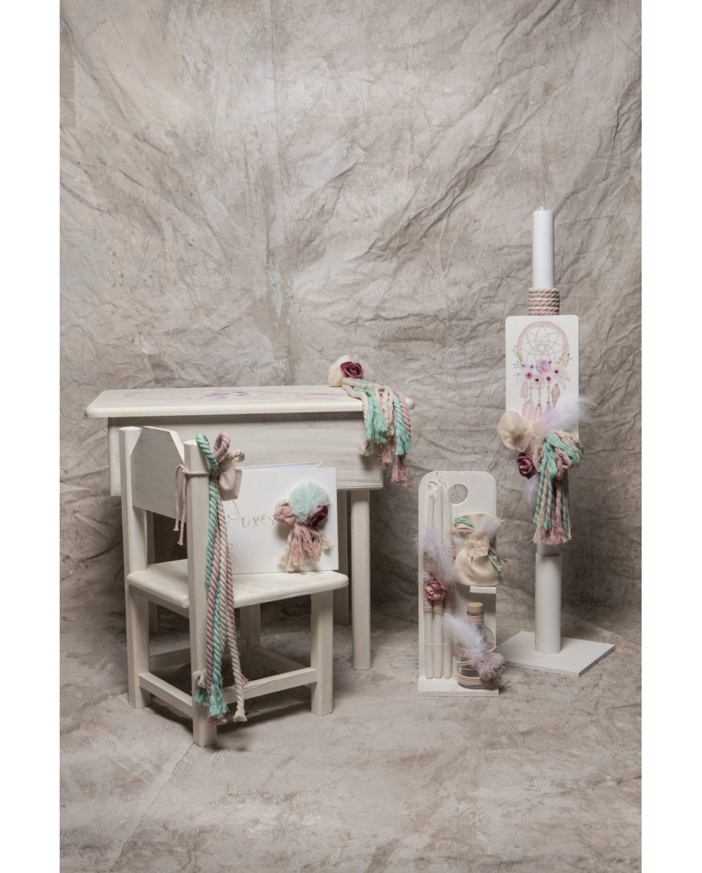 Πακέτο βάπτισης Baby Bloom τραπεζάκι μαζί με το καρεκλάκι του με ζωγραφική στο χέρι και προτεινόμενο θέμα ονειροπαγίδα