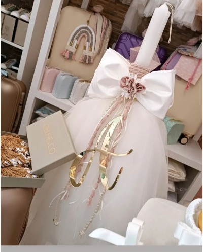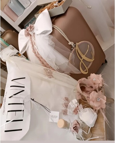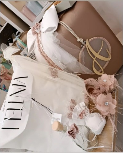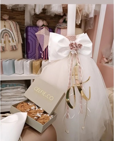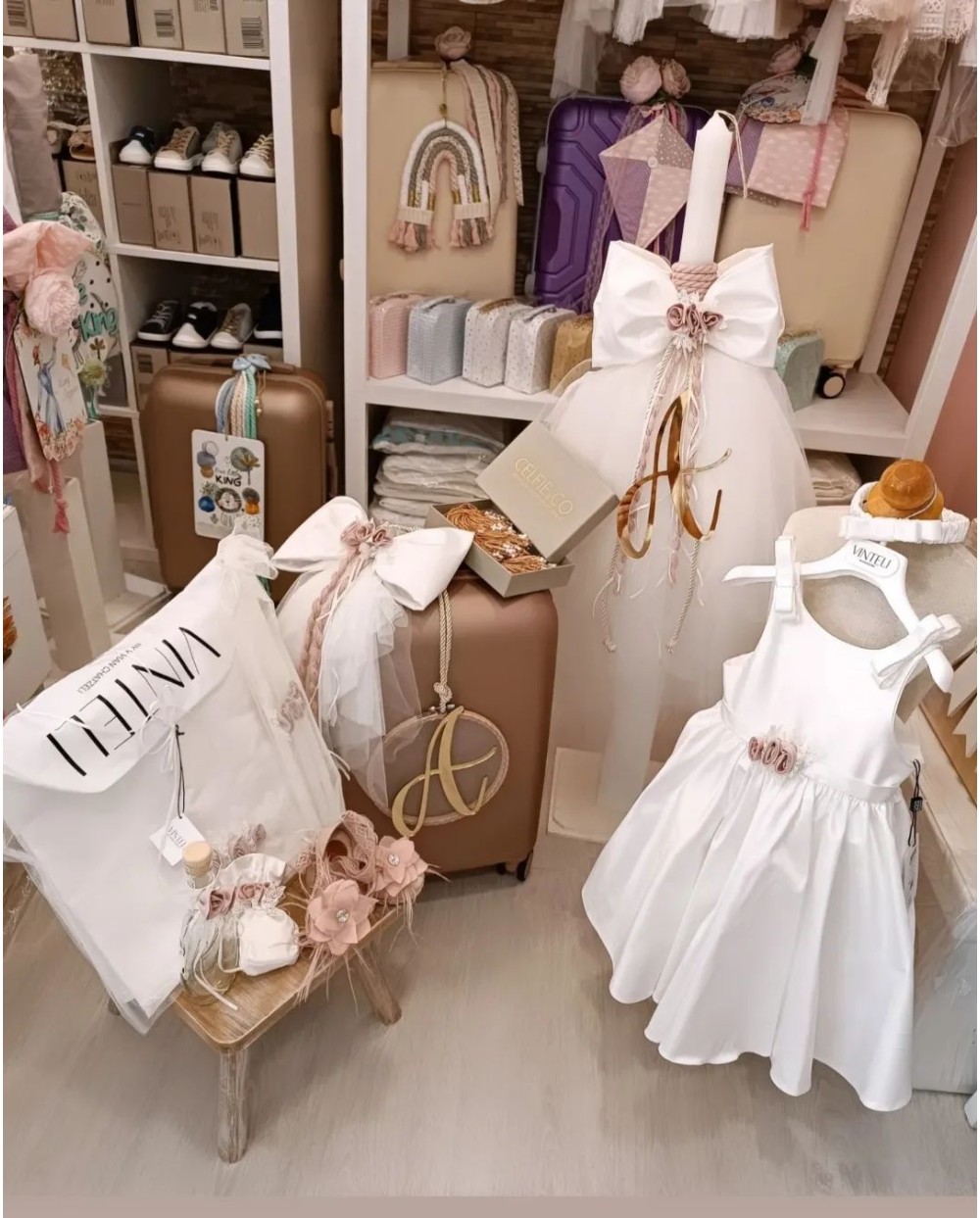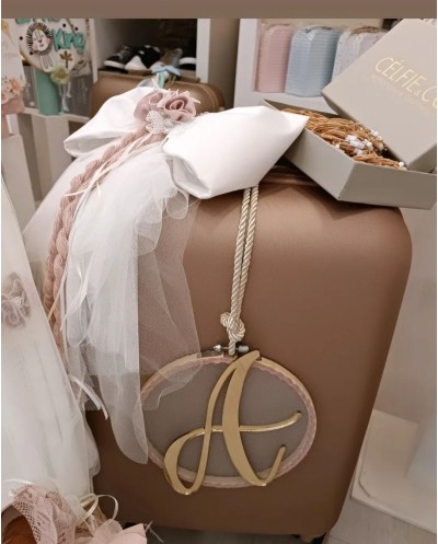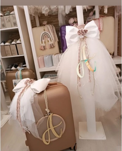 Πακέτο βάπτισης για κορίτσι Βαλίτσα Φιόγκος Μονόγραμμα Α