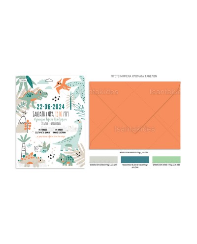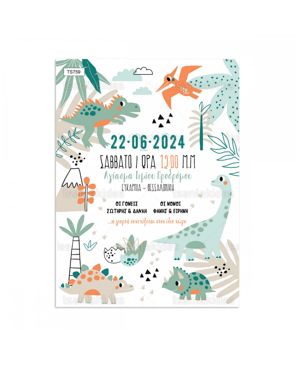 (TS759) Προσκλητήριο Βάπτισης Baby dinosaurs
