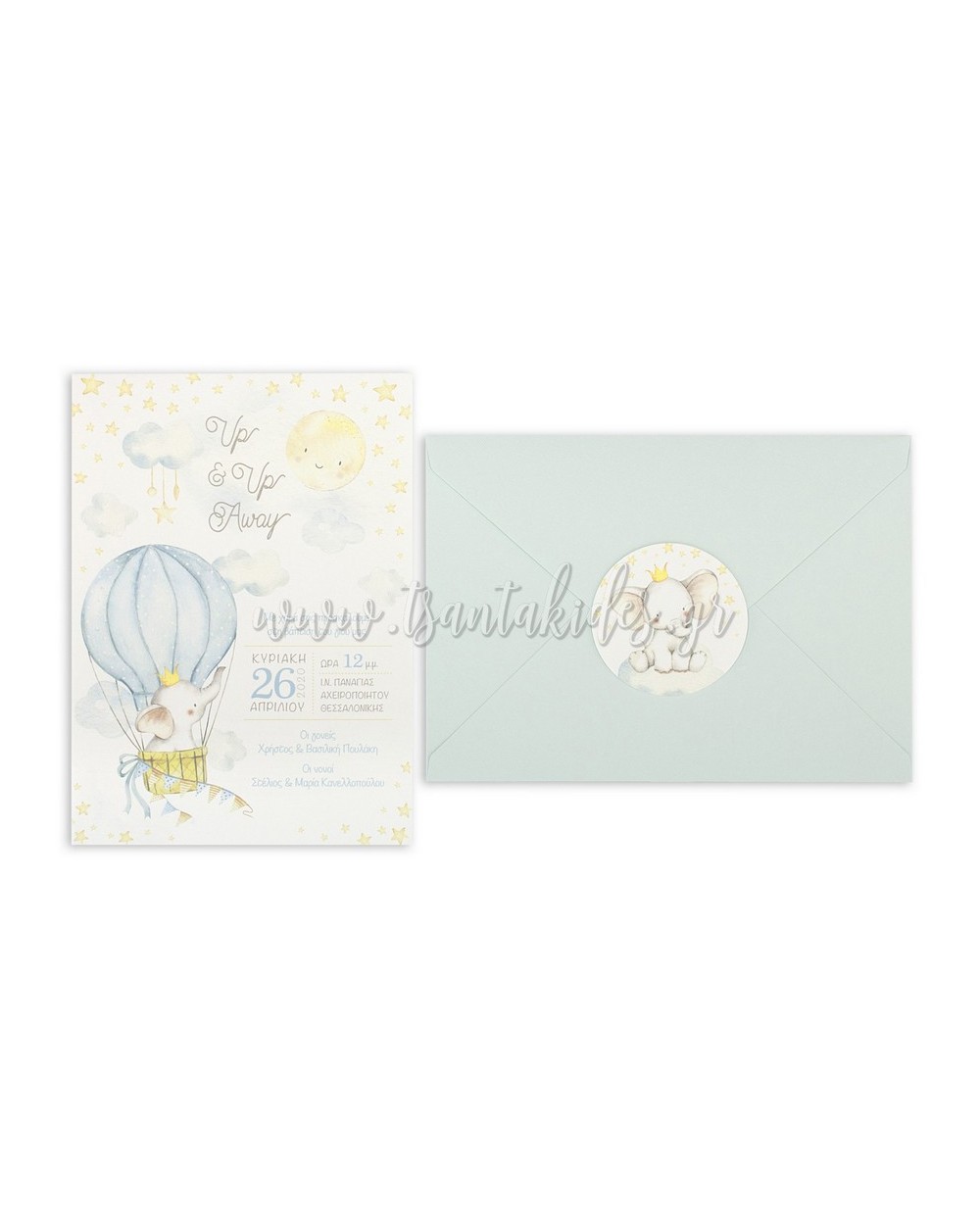 (1767 No106Κ) Προσκλητήριο Βάπτισης Ελεφαντάκι Αερόστατο