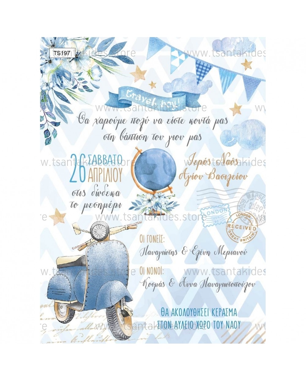(TS197) Προσκλητήριο Βάπτισης Vespa