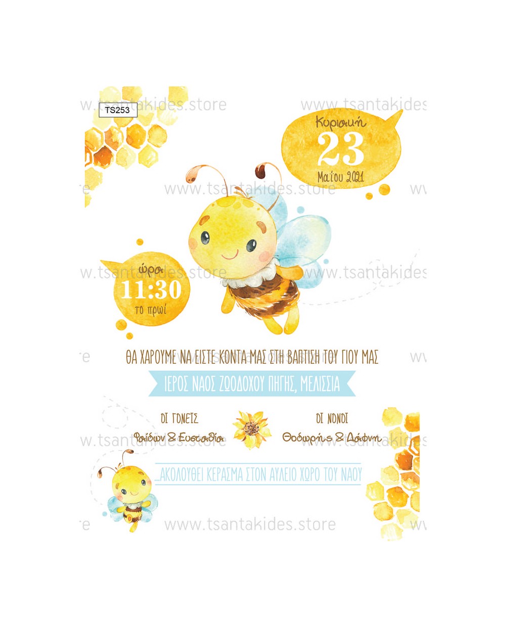 (TS253) Προσκλητήριο Βάπτισης Μελισσούλα