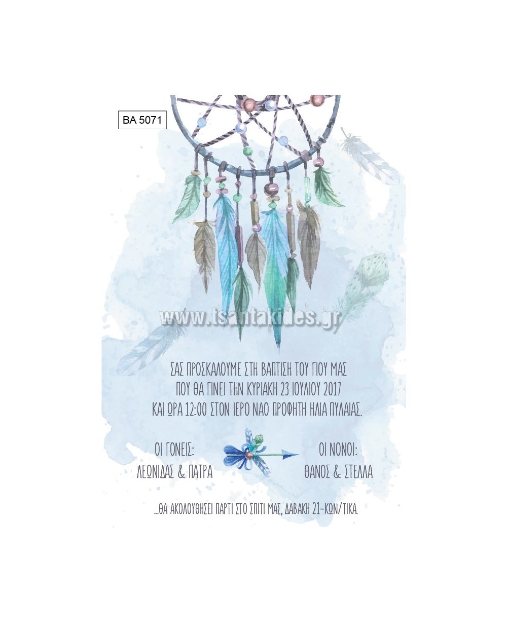 (ΒΑ-5071) Προσκλητήριο Βάπτισης Ονειροπαγίδα Ινδιάνος