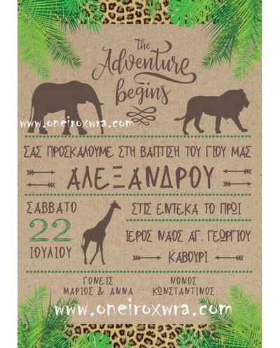 Προσκλητήριο Βάπτισης Ζωάκια Ζούγκλας Animal Print