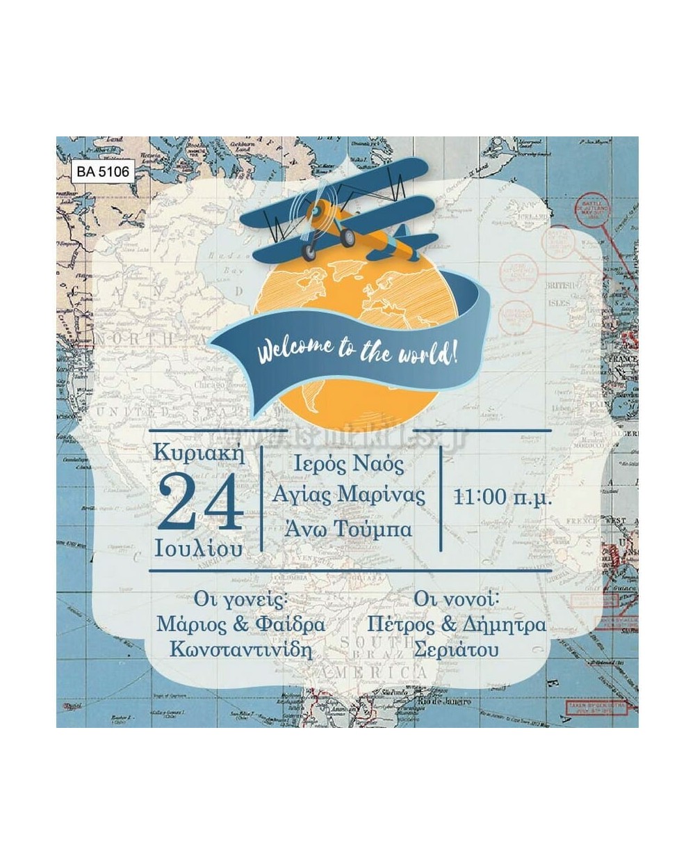 (ΒΑ-5106) Προσκλητήριο Βάπτισης Αεροπλανάκι