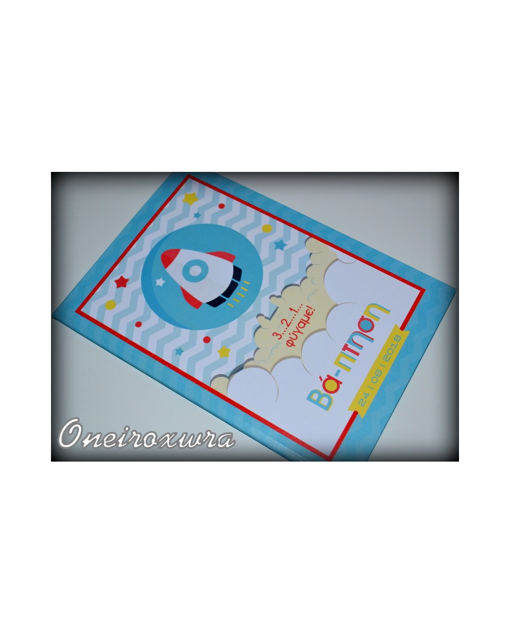 Προσκλητήριο Βάπτισης Σκληρό Βιβλιαράκι Διάστημα