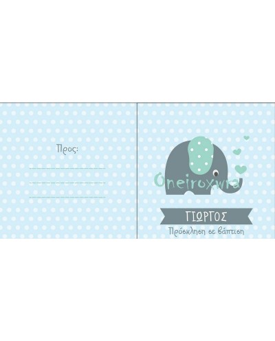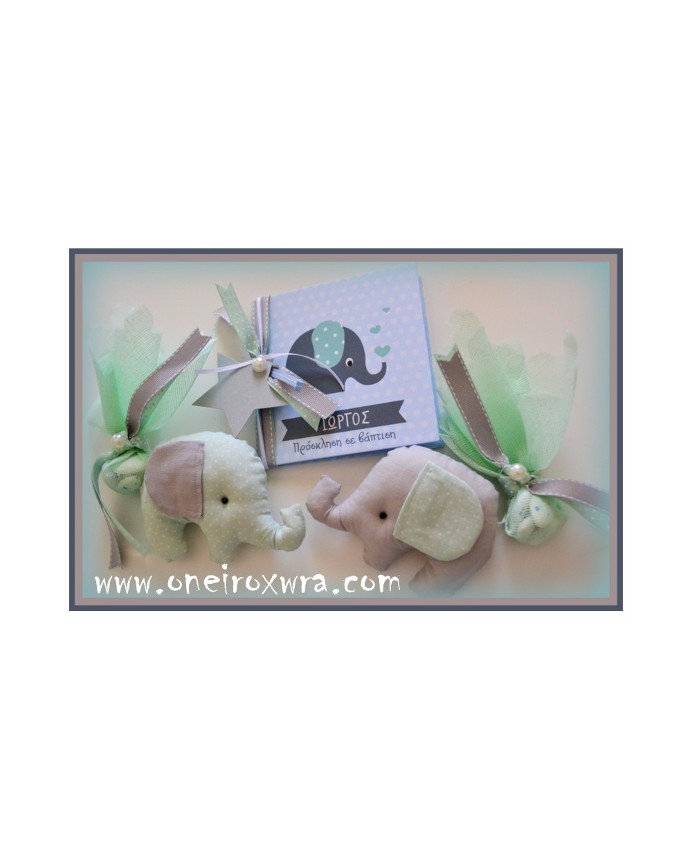 Προσκλητήριο Βάπτισης Σκληρό Βιβλιαράκι Ελεφαντάκι