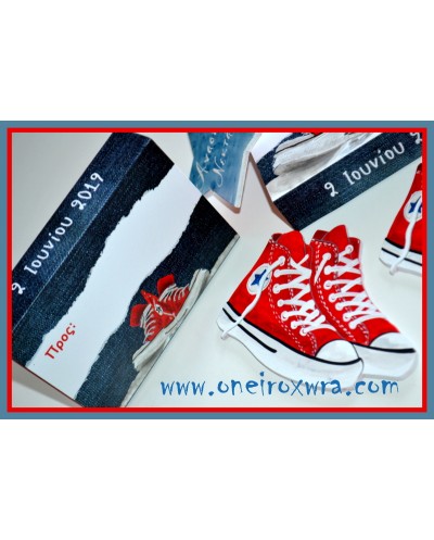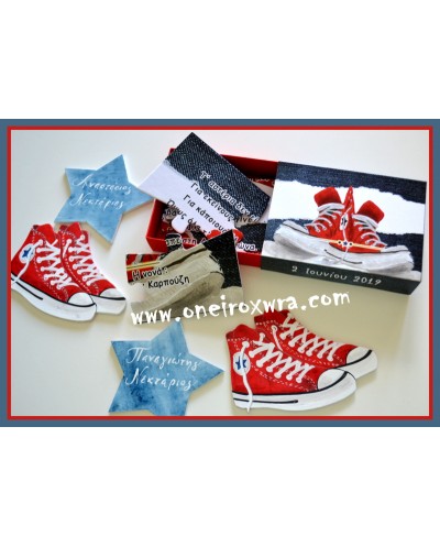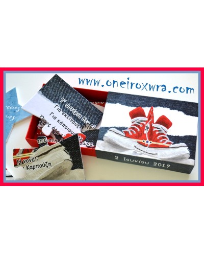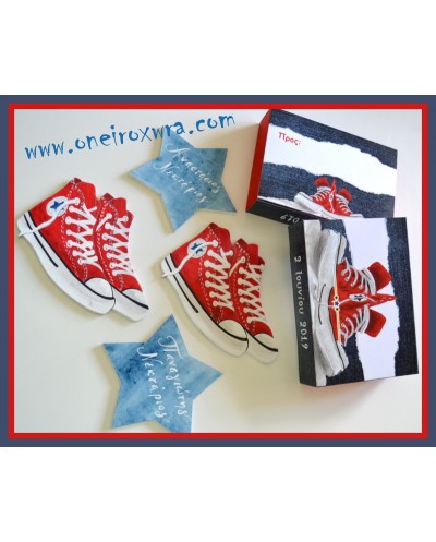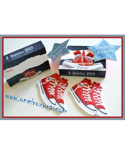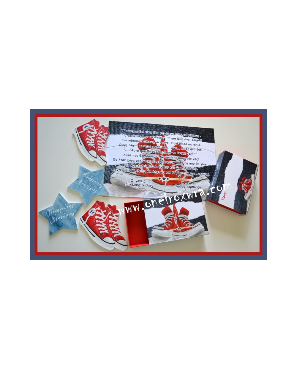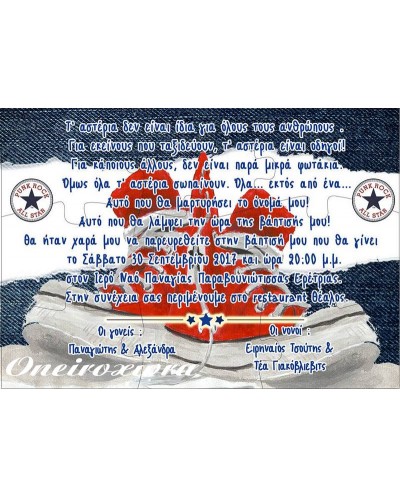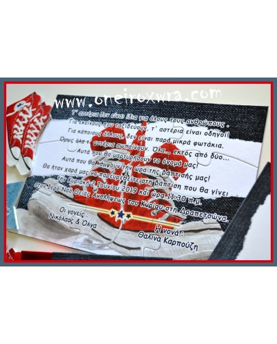 Προσκλητήριο Βάπτισης Παζλ Σταράκια Κόκκινο Τζιν 9 τμχ