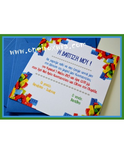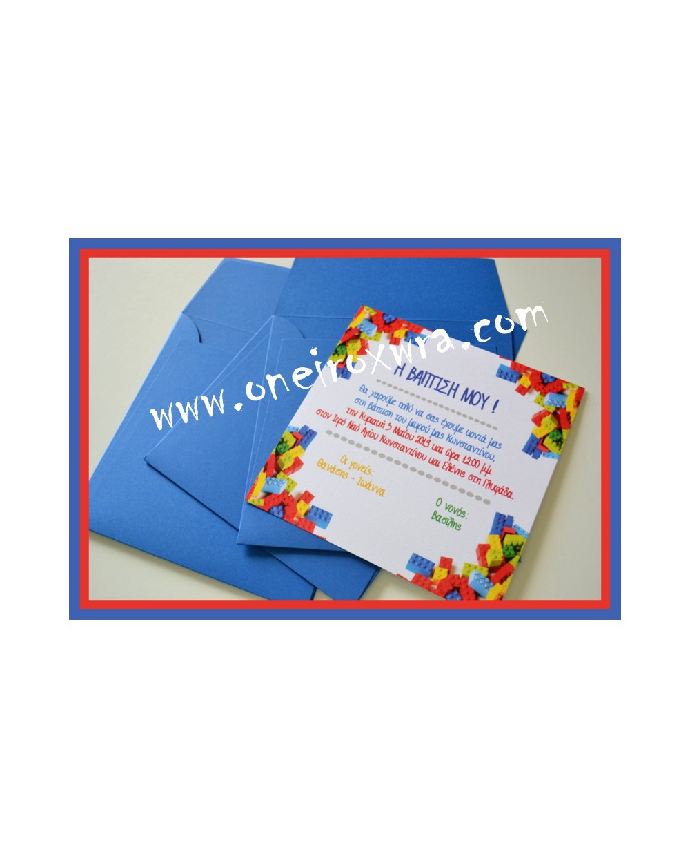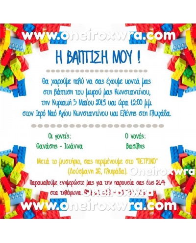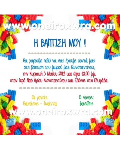 Προσκλητήριο Βάπτισης Τουβλάκια Lego Λευκό Φόντο 1
