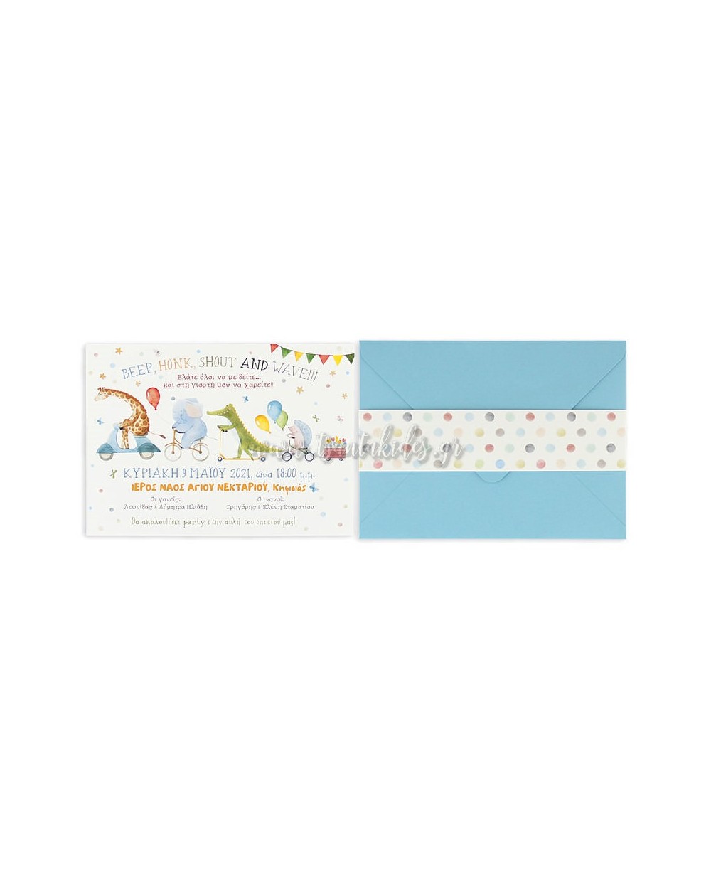 (1799 No91Κ) Προσκλητήριο Βάπτισης Ζωάκια Ζούγκλας