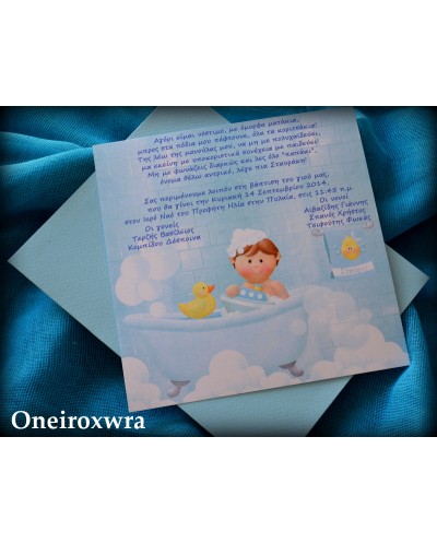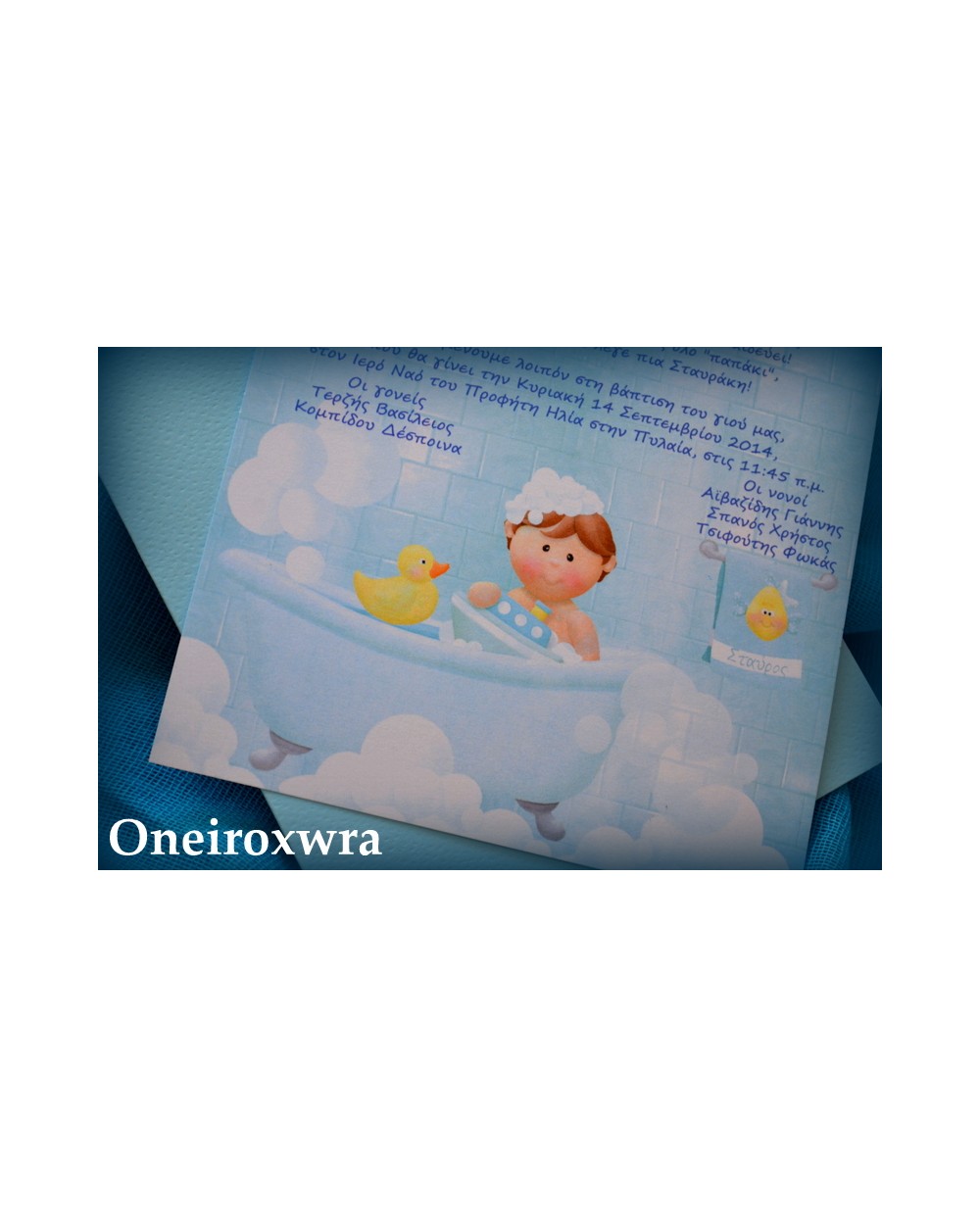 Προσκλητήριο Βάπτισης Αγοράκι με Παπάκι Σταύρος
