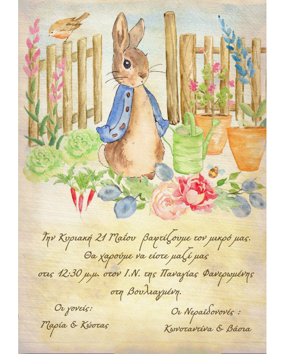 Προσκλητήριο Βάπτισης Peter Rabbit 2 με Οικολογικό Φάκελο