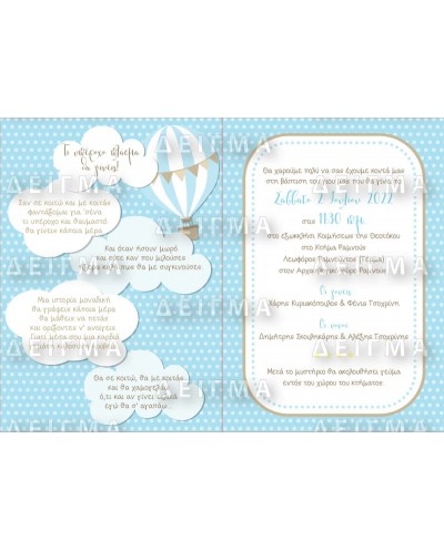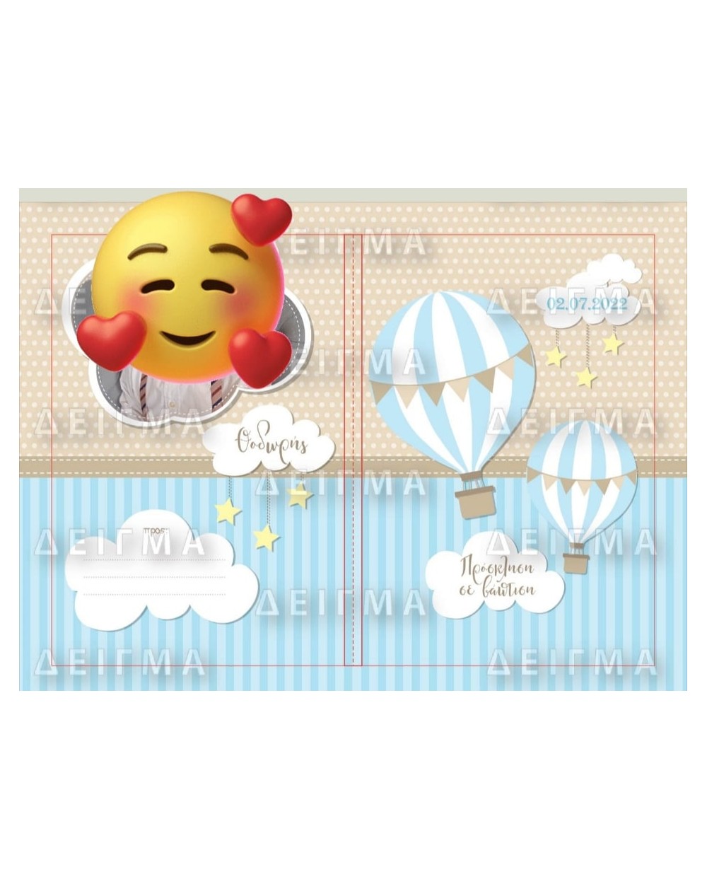 Προσκλητήριο Βάπτισης Σκληρό Βιβλιαράκι Αερόστατο με Φώτο 1