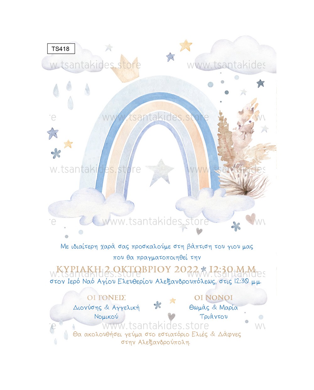 (TS418) Προσκλητήριο Βάπτισης Οικονομική σειρά Ουράνιο Τόξο