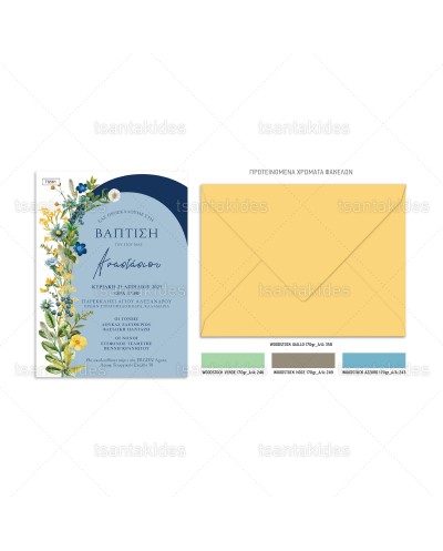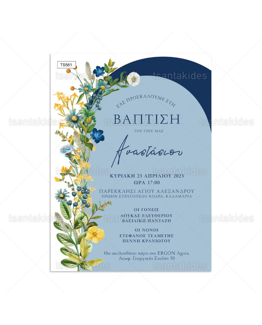 (TS561) Προσκλητήριο Βάπτισης Wild Flowers Arch Αγριολούλουδα