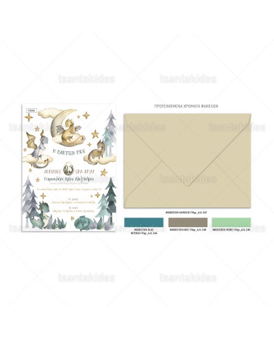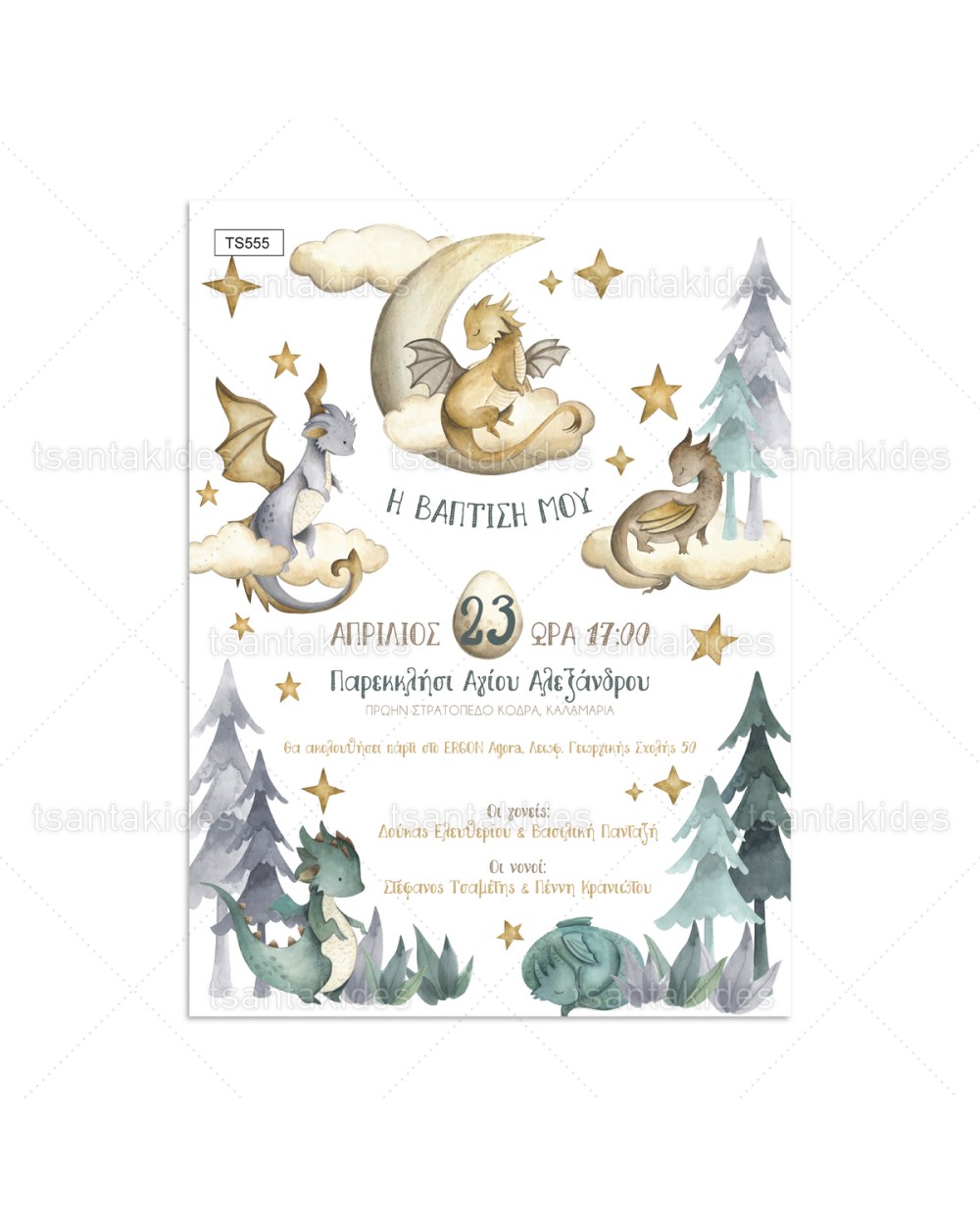 (TS555) Προσκλητήριο Βάπτισης Δράκος Cute Dragons