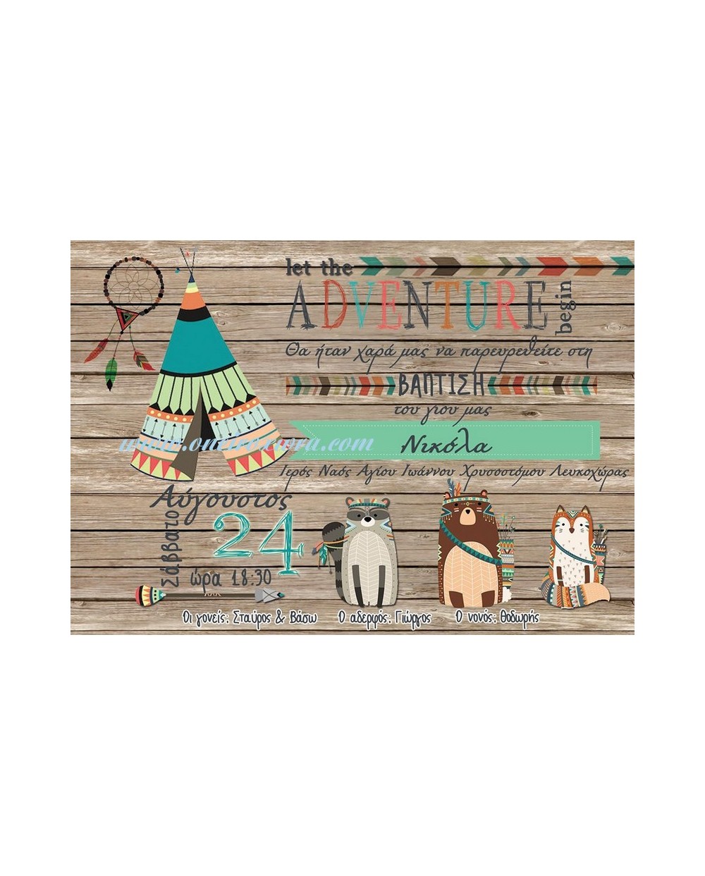 Ηλεκτρονικό Προσκλητήριο Βάπτισης Ζωάκια Δάσους Ινδιάνοι Νο1