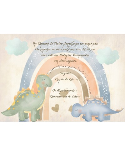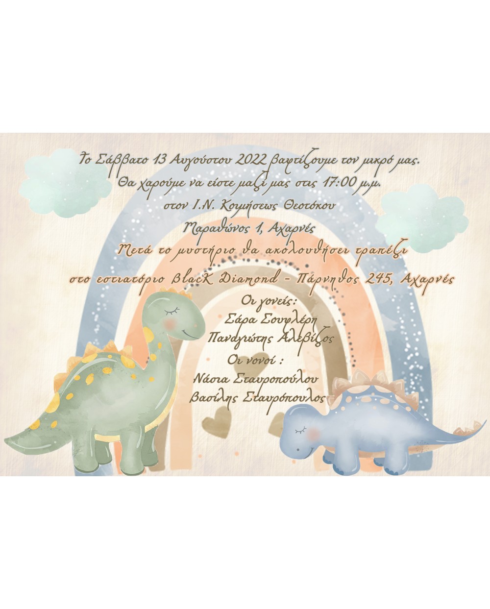 Ηλεκτρονικό Προσκλητήριο Βάπτισης Δεινόσαυρος Ουράνιο Τόξο