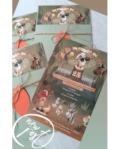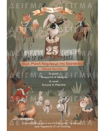 (TS571) Προσκλητήριο Βάπτισης Ζωάκια Μουσικοί