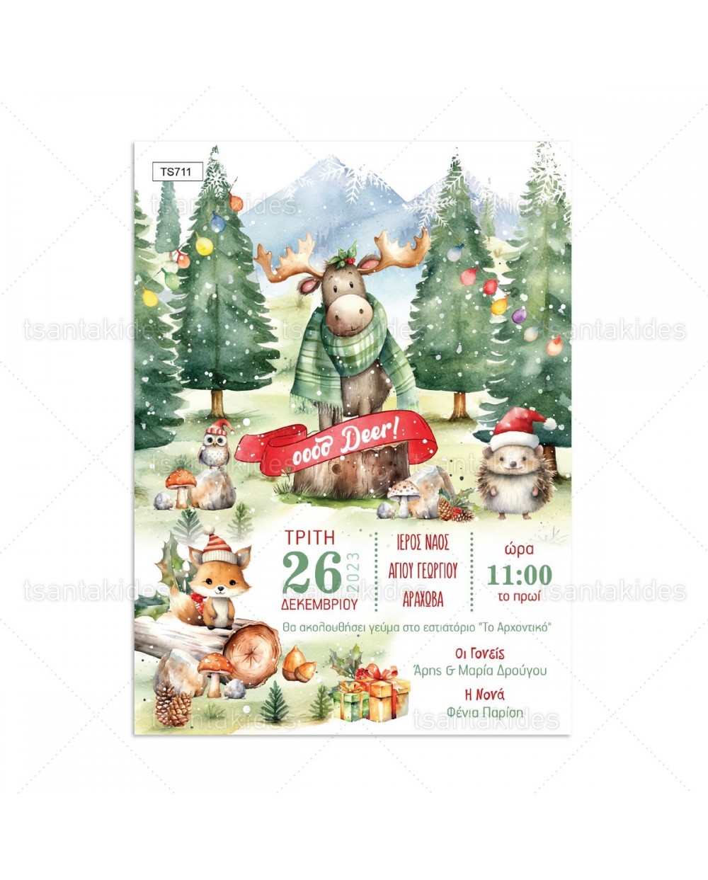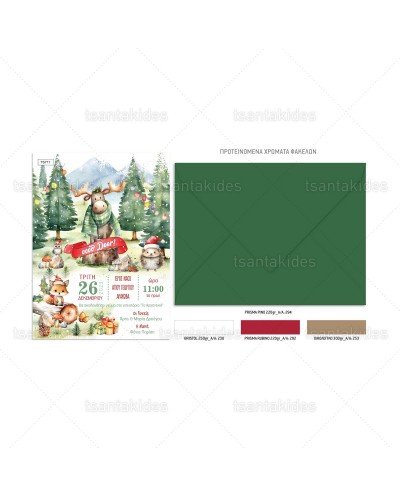 TS711-No91K Χριστουγεννιάτικο Προσκλητήριο Ζωάκια Δάσους
