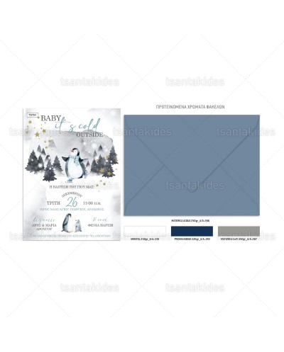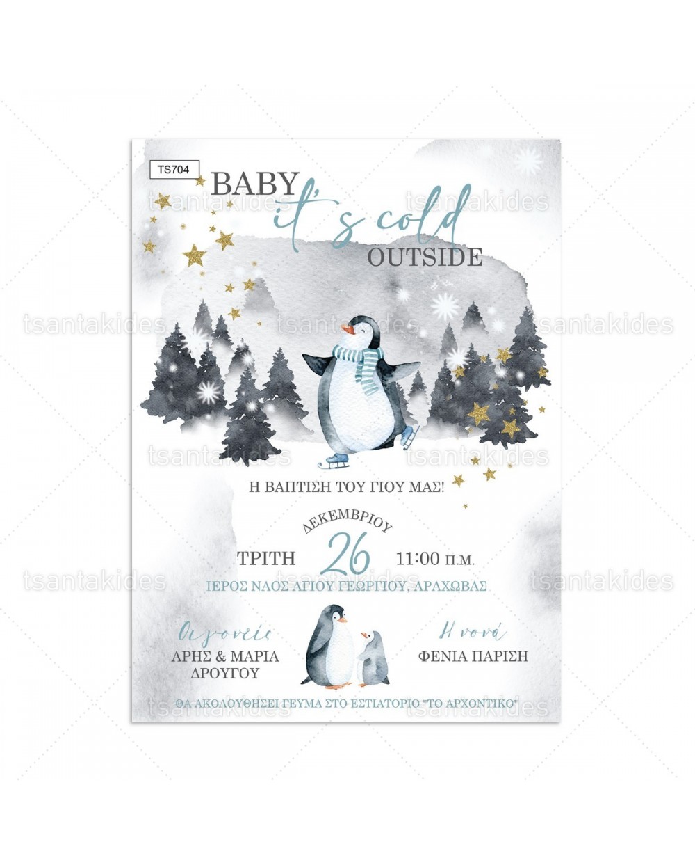 TS704-No91K Χριστουγεννιάτικο Προσκλητήριο Πιγκουίνοι