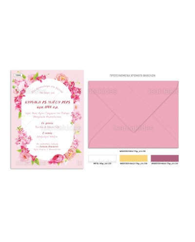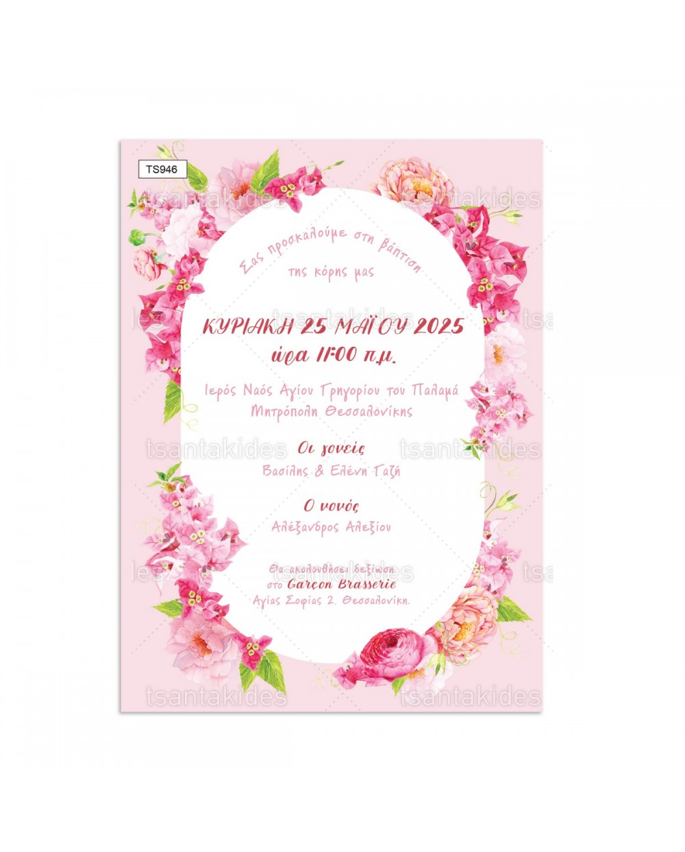 (TS946) Προσκλητήριο Βάπτισης Peony and Bougainvillea