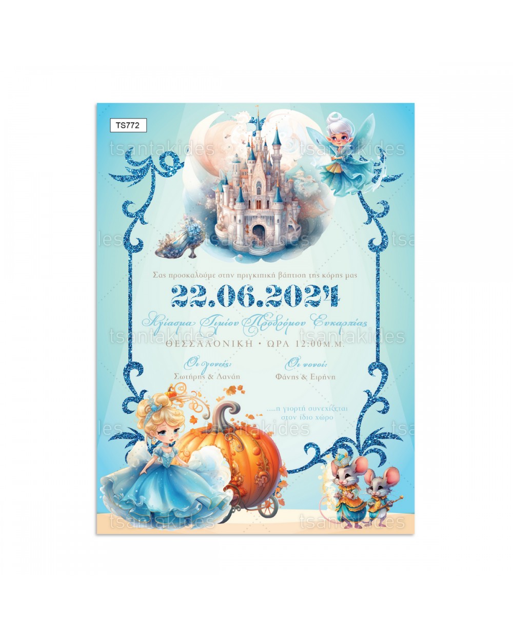 (TS772) Προσκλητήριο Βάπτισης Cinderella