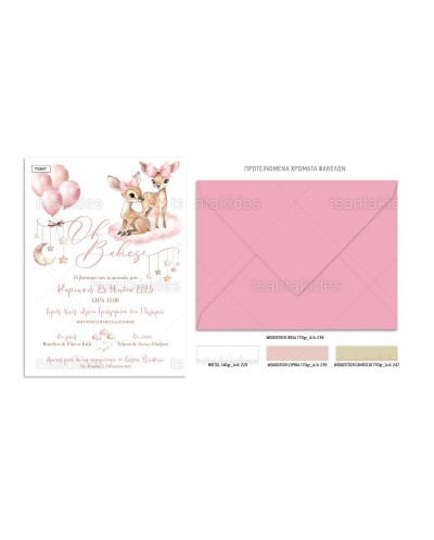 (TS947) Προσκλητήριο Βάπτισης Twins Deer