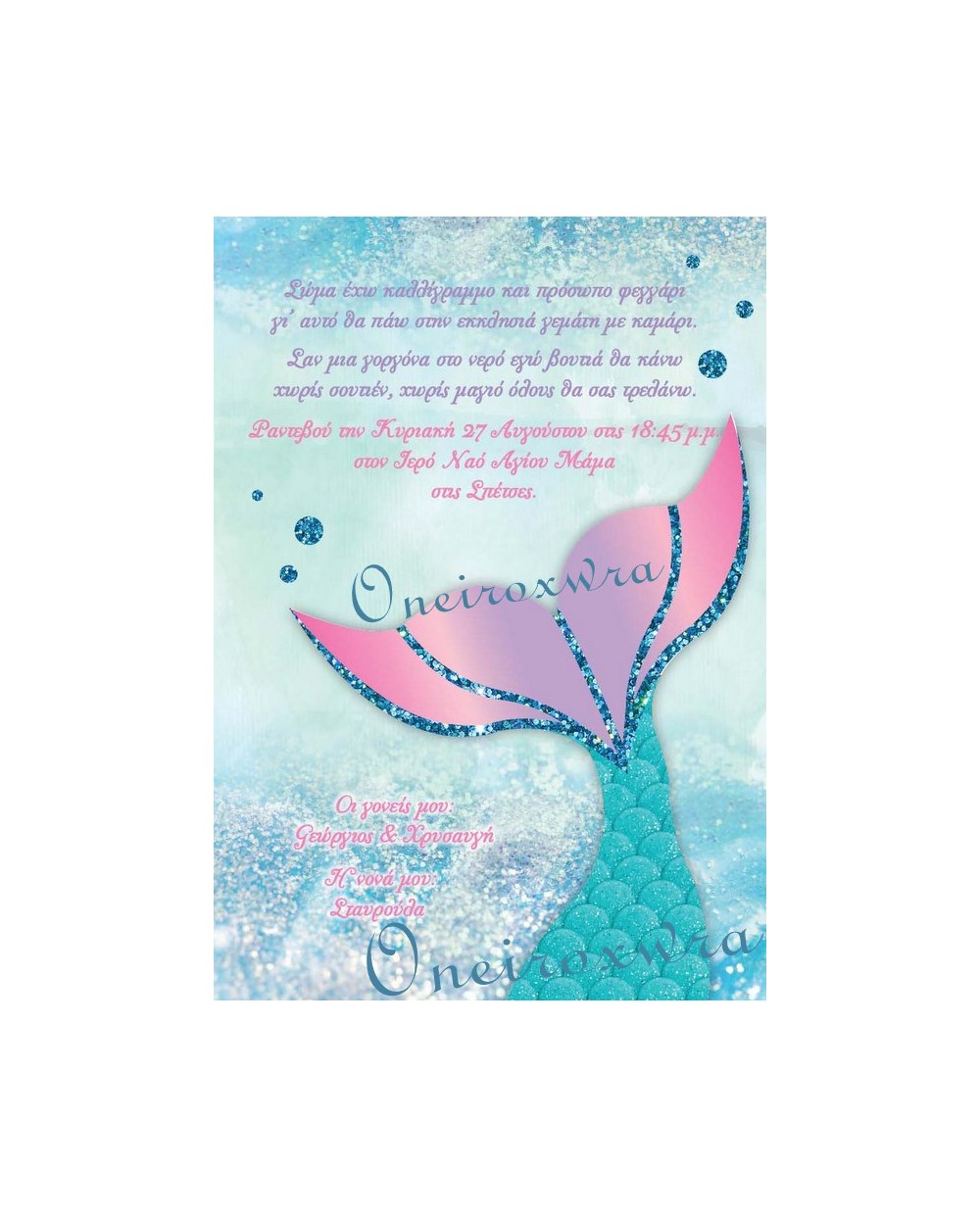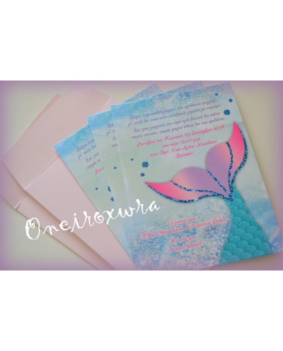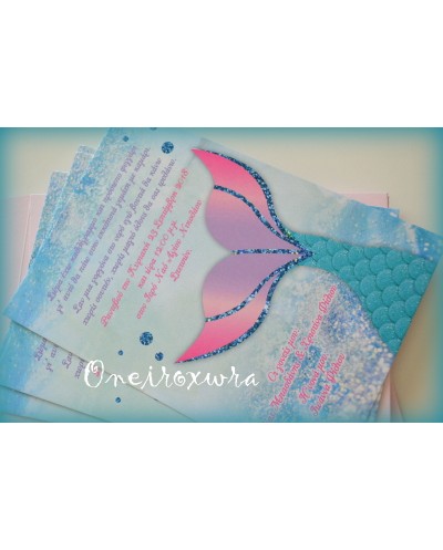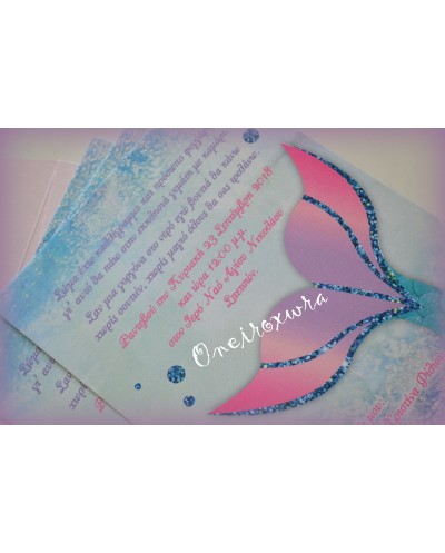 (1641 – No79K) Προσκλητήριο Βάπτισης Ουρά Γοργόνας Φούξια