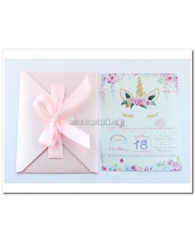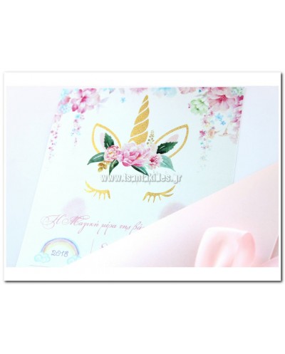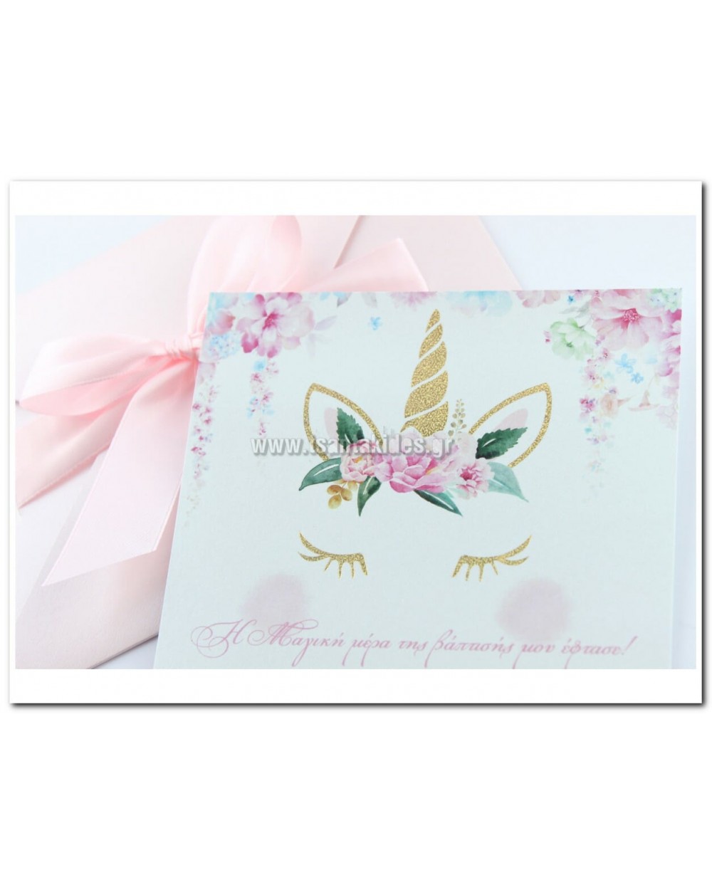 (1686 – ΝΟ91) Προσκλητήριο Βάπτισης Μονόκερος Χρυσοτυπία
