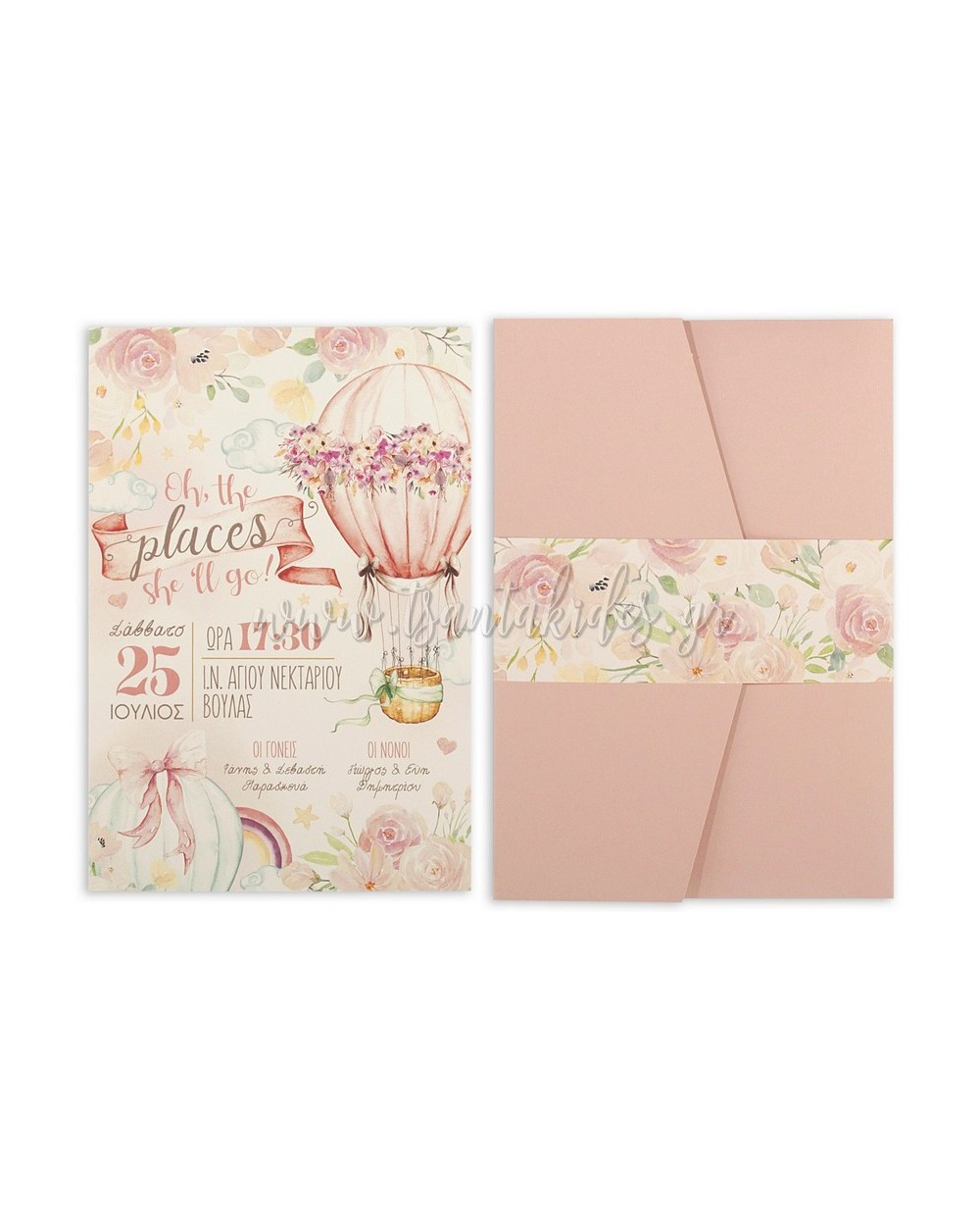 (1785 No103Κ) Προσκλητήριο Βάπτισης Αερόστατο Φλοράλ