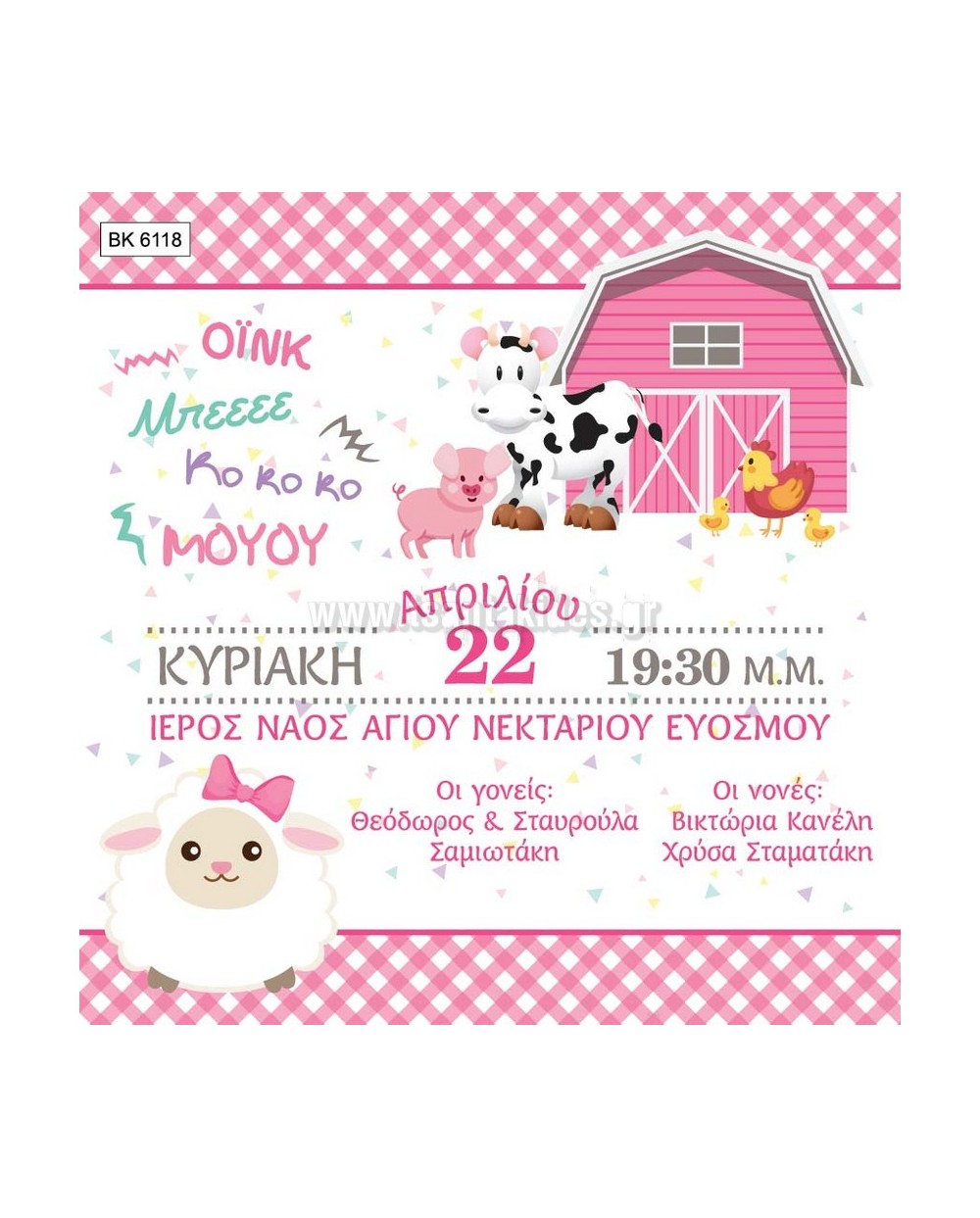 (ΒΚ-6118) Προσκλητήριο Βάπτισης Ζωάκια Φάρμας