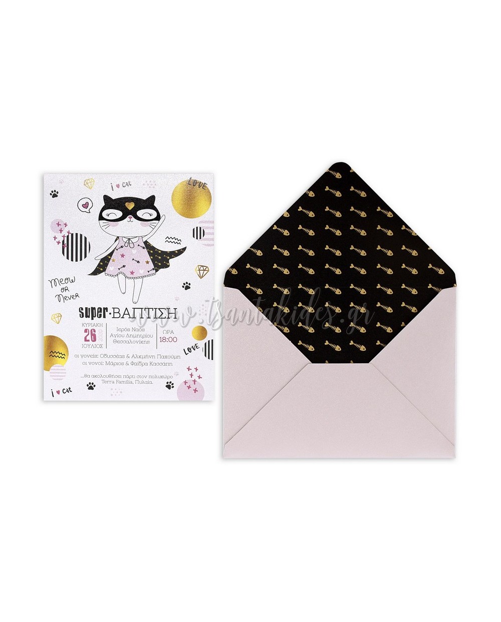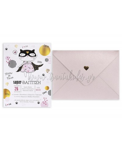(1764 No91Κ) Προσκλητήριο Βάπτισης Γατούλα Σούπερ Ήρωας