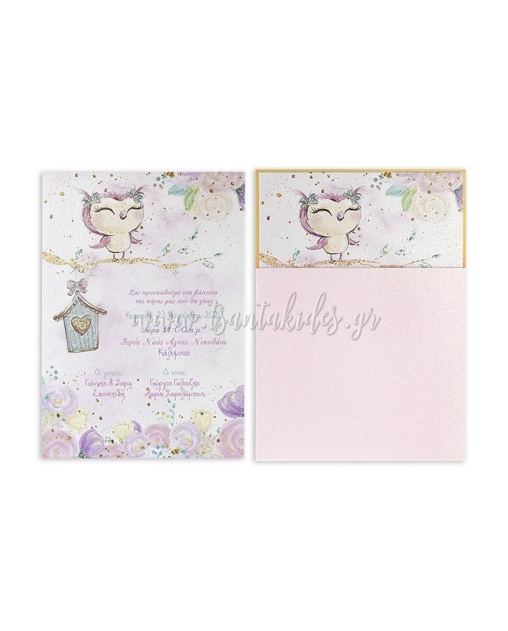 (1779 No65Κ) Προσκλητήριο Βάπτισης Κουκουβάγια