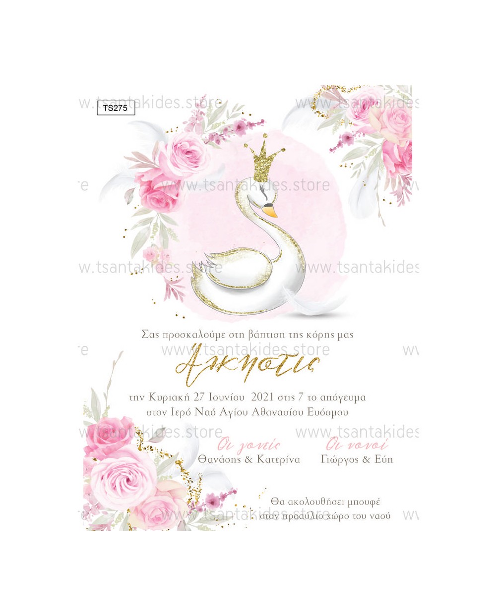 (TS275) Προσκλητήριο Βάπτισης Κύκνος