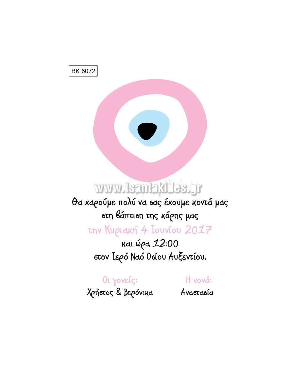 (ΒΚ-6072) Προσκλητήριο Βάπτισης Ματάκι Φυλαχτό