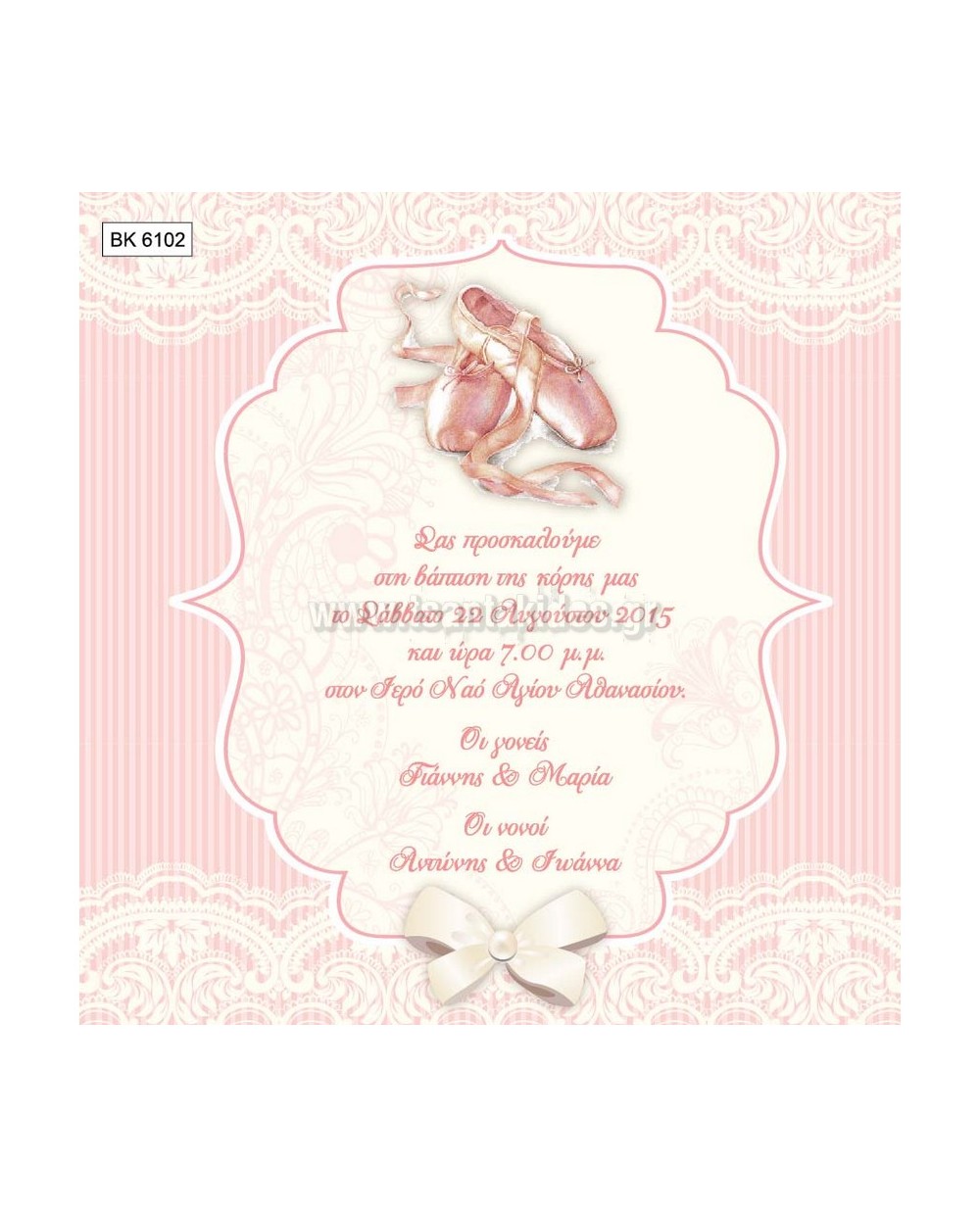 (ΒΚ-6102) Προσκλητήριο Βάπτισης Μπαλαρίνα Πουέντς