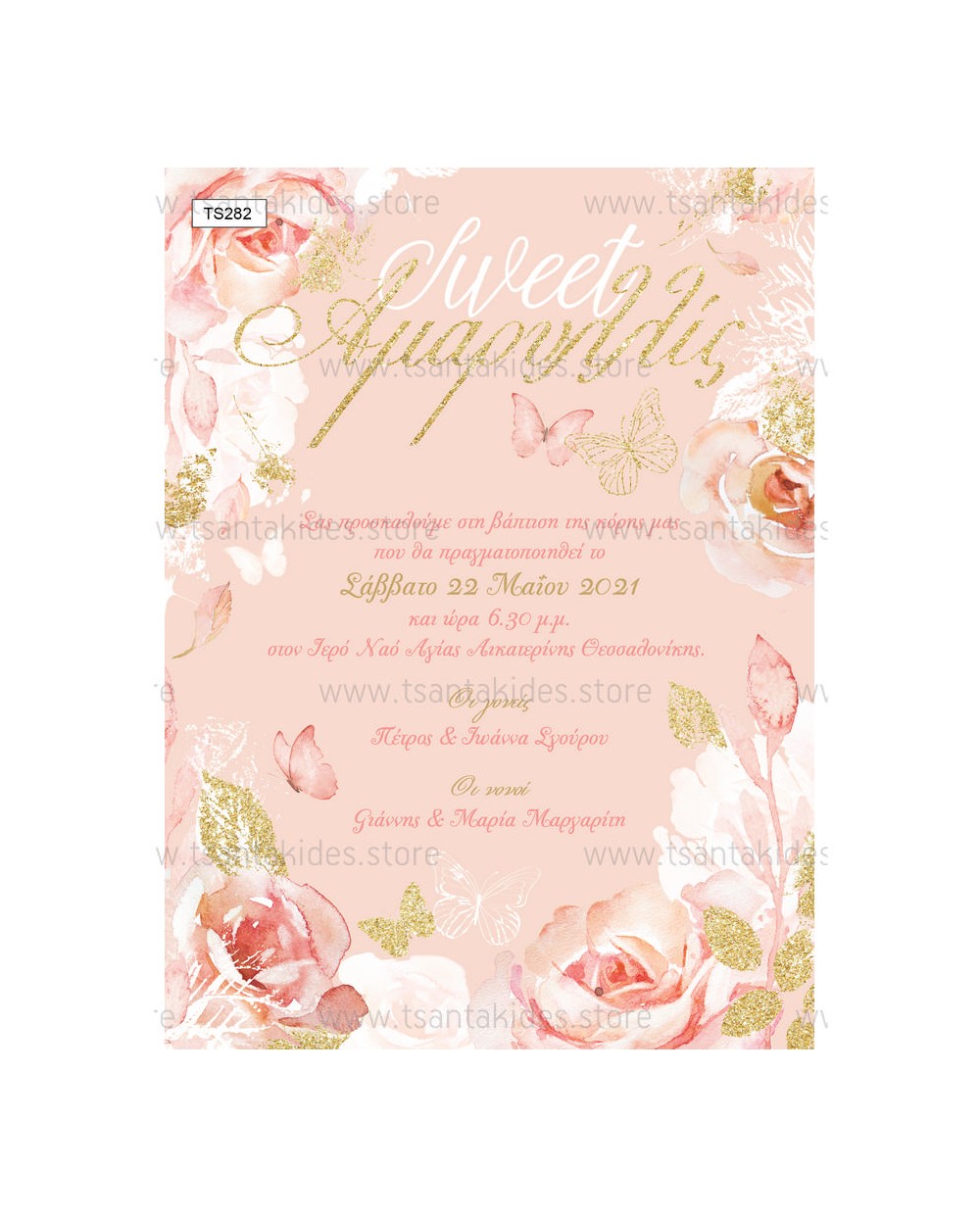 (TS282) Προσκλητήριο Βάπτισης Πεταλούδα