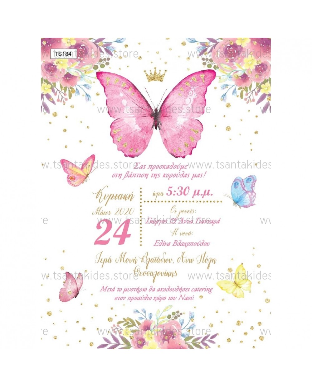 (TS184) Προσκλητήριο Βάπτισης Πεταλούδα