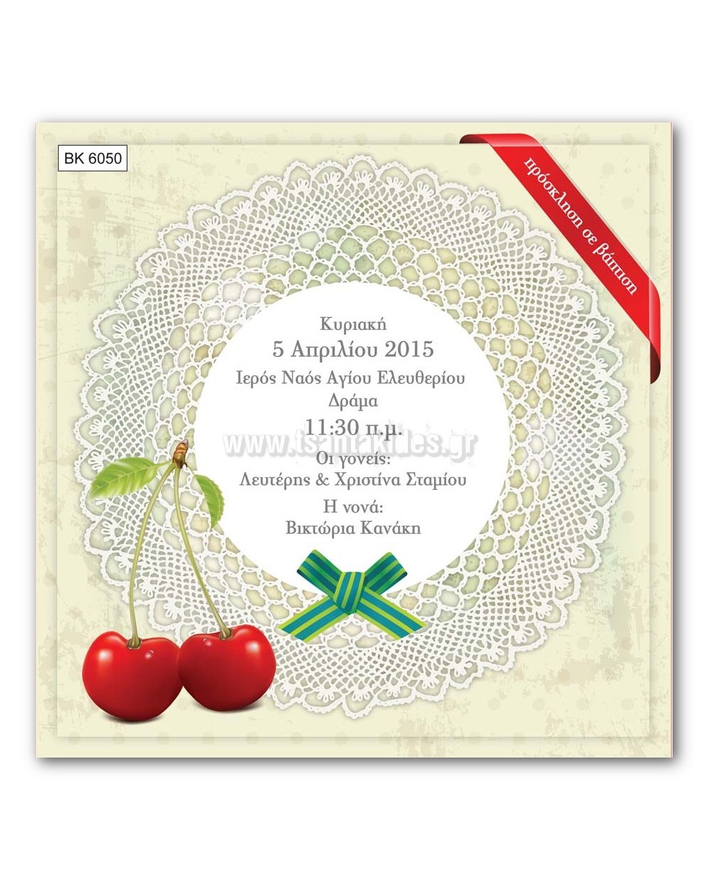 (ΒΚ-6050) Προσκλητήριο Βάπτισης Κερασάκι