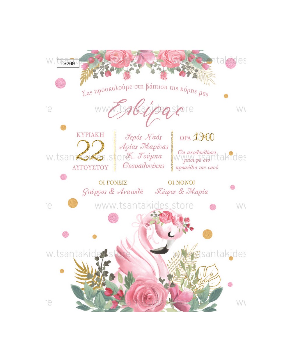 (TS269) Προσκλητήριο Βάπτισης Φλαμίνγκο