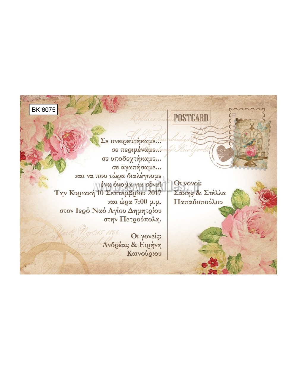 (ΒΚ-6075) Προσκλητήριο Βάπτισης Φλοράλ