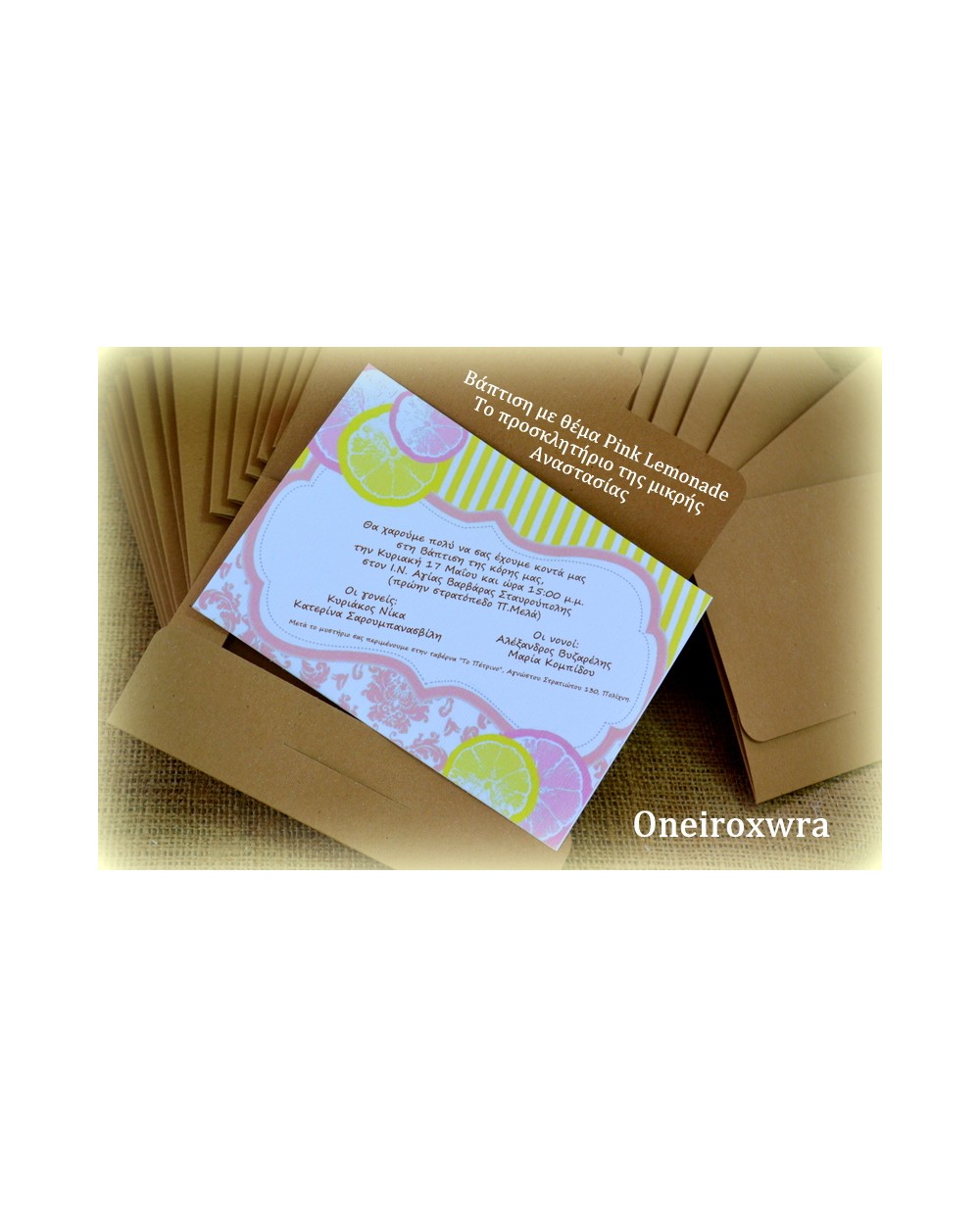 Προσκλητήριο Βάπτισης Pink Lemonade Αναστασία