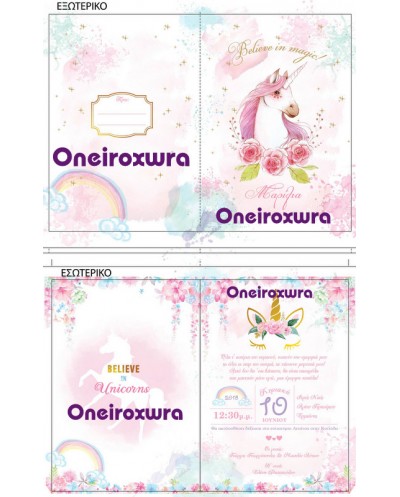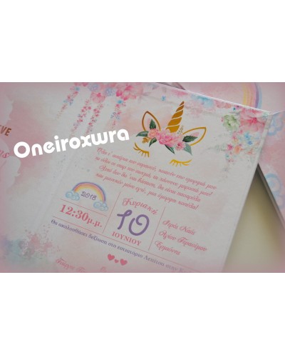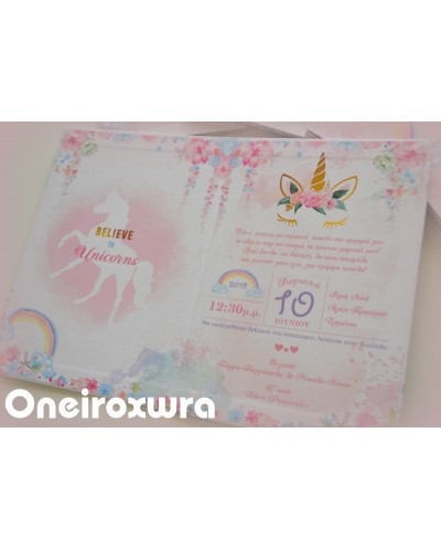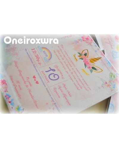 Προσκλητήριο Βάπτισης Σκληρό Βιβλιαράκι Μονόκερος Μαρίλια