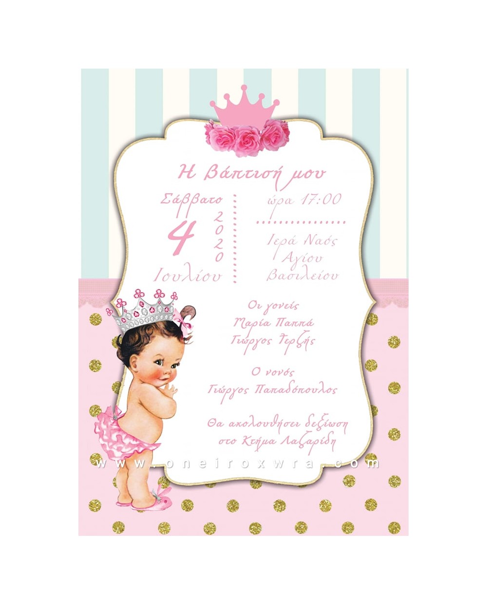 Προσκλητήριο Βάπτισης Μπεμπούλα Πριγκιπισσούλα Ροζ - Μέντα - Σάπιο Μήλο
