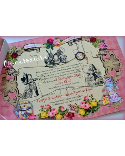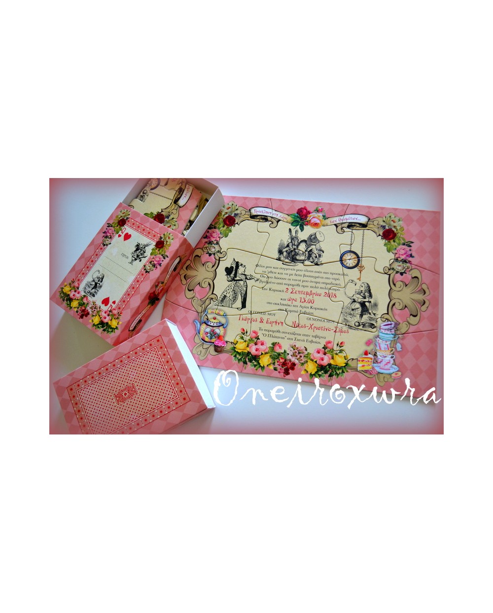Προσκλητήριο Βάπτισης Παζλ Αλίκη Σάπιο Μήλο Κουτί 9 τμχ