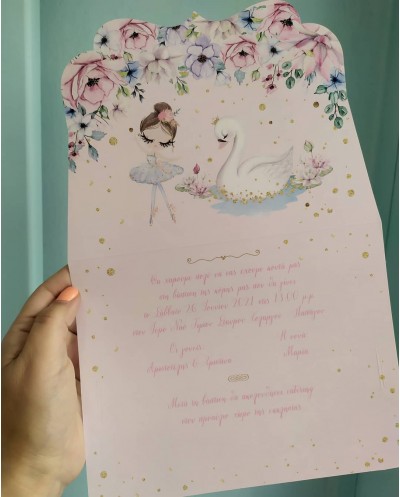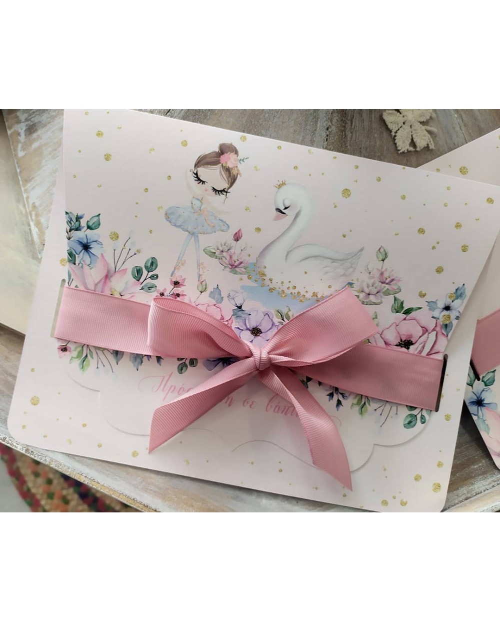 Προσκλητήριο Βάπτισης Μπαλαρίνα Κύκνος 2Π4
