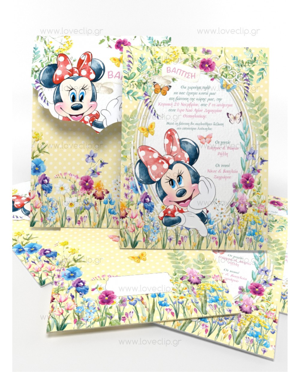 Προσκλητήριο με θέμα την αγαπημένη μας Minnie, με φλοράλ διακόσμηση.